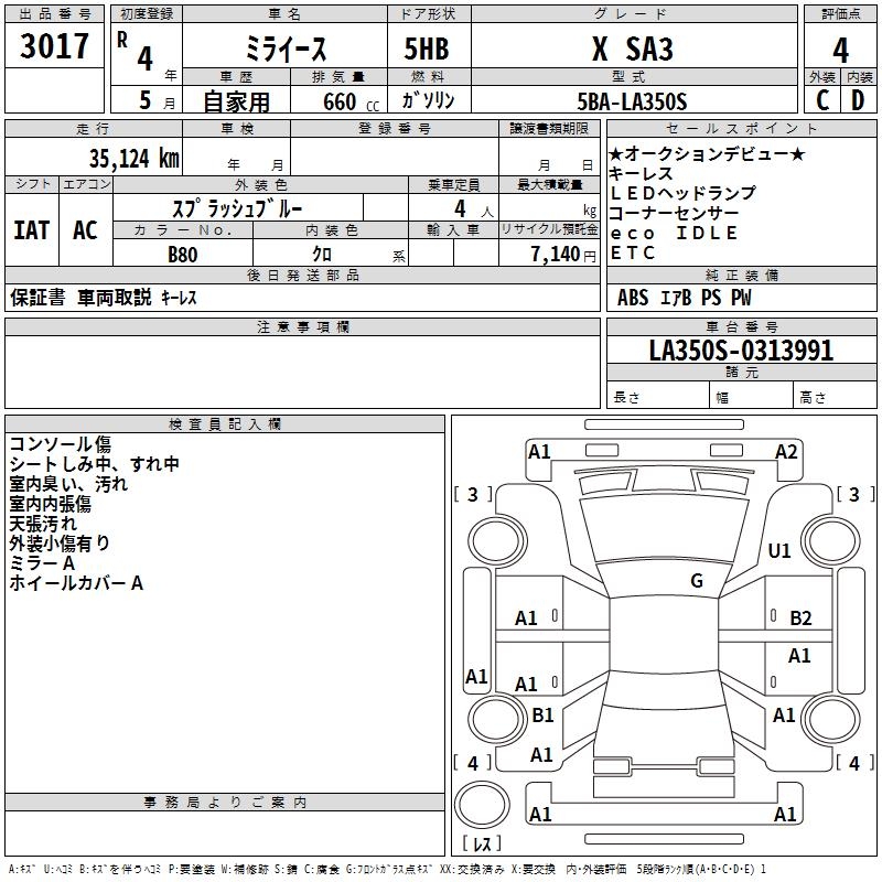 DAIHATSU MIRA E:S X SA3 - лот 3017