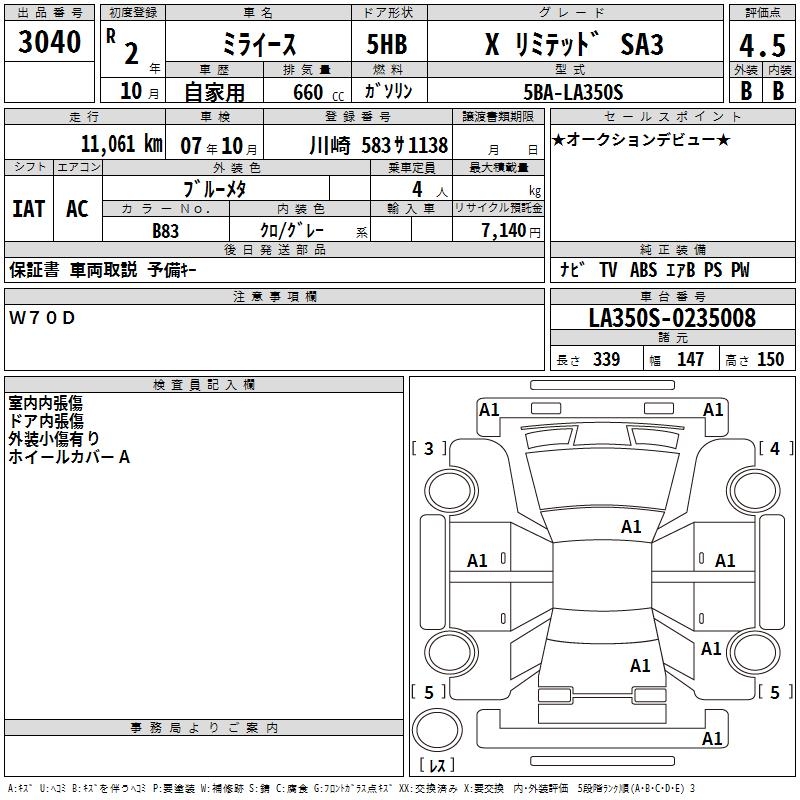 DAIHATSU MIRA E:S X LIMITED SA3 - лот 3040