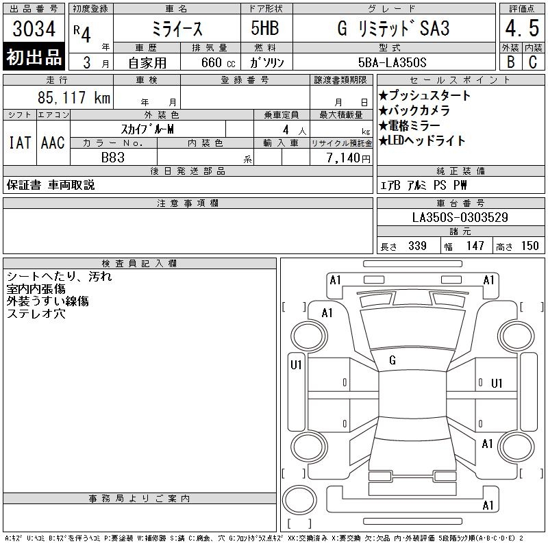 DAIHATSU MIRA E:S G LIMITED SA3 - лот 3034