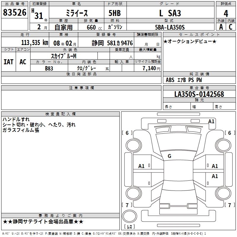 DAIHATSU MIRA E:S L SA3 - лот 83526