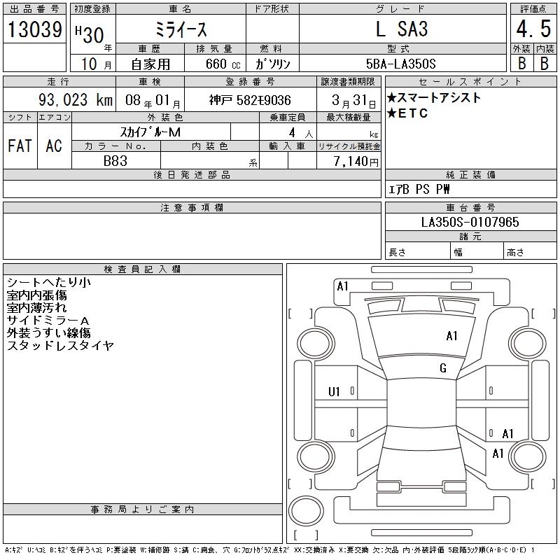 DAIHATSU MIRA E:S L SA3 - лот 13039