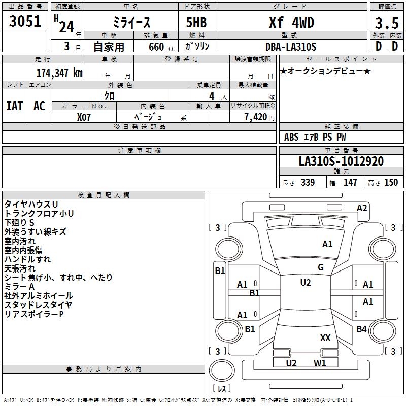 DAIHATSU MIRA E:S Xf 4WD - лот 3051