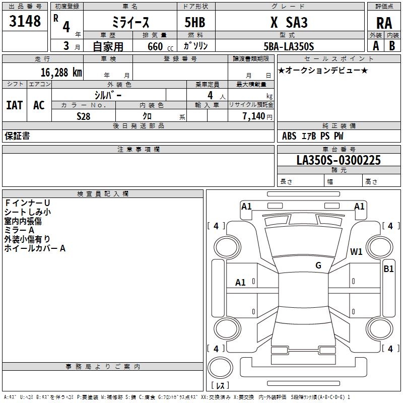 DAIHATSU MIRA E:S X SA3 - лот 3148