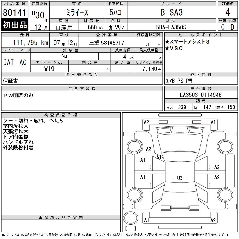 DAIHATSU MIRA E:S B SA3 - лот 80141