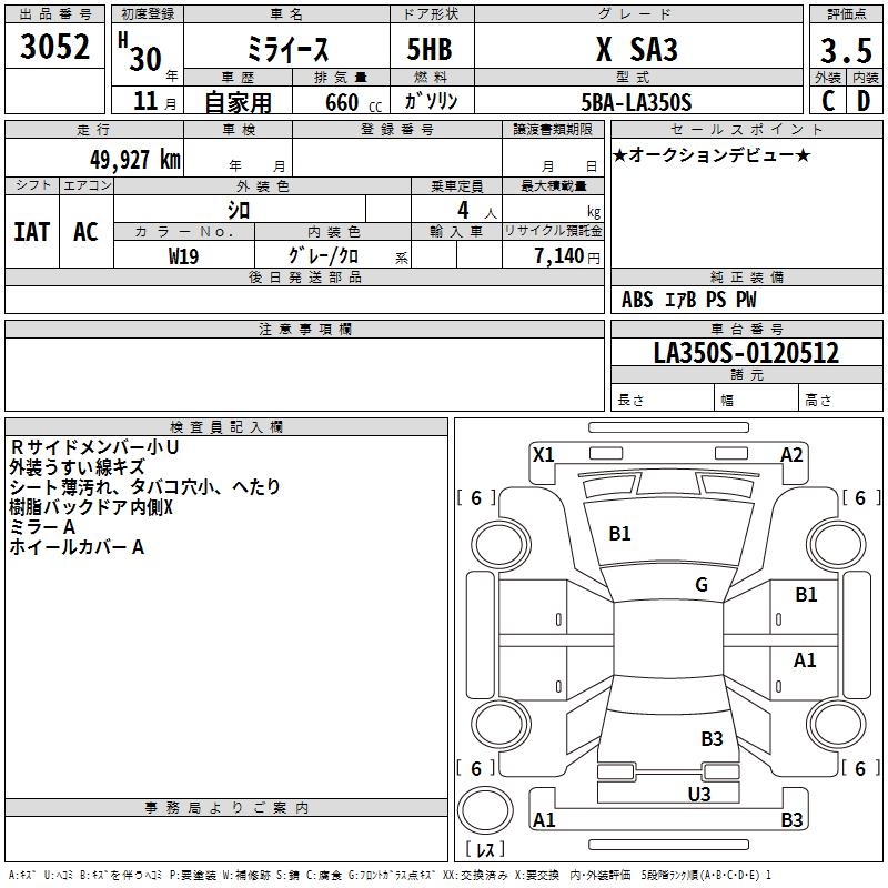 DAIHATSU MIRA E:S X SA3 - лот 3052