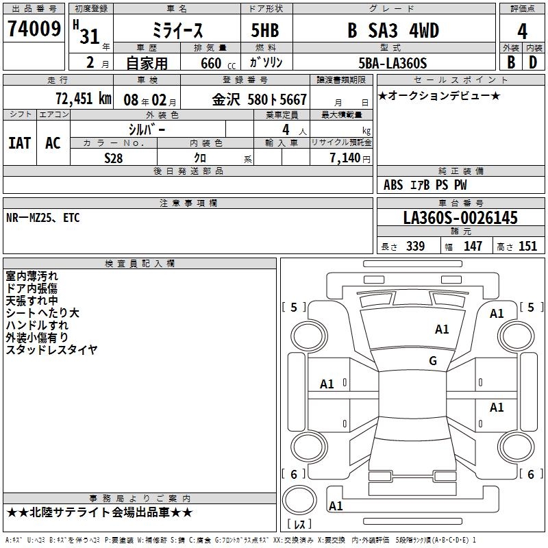 DAIHATSU MIRA E:S B SA3 4WD - лот 74009