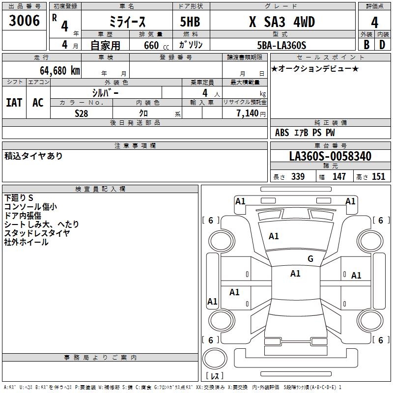 DAIHATSU MIRA E:S X SA3 4WD - лот 3006