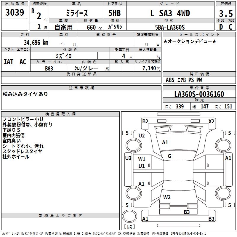 DAIHATSU MIRA E:S L SA3 4WD - лот 3039