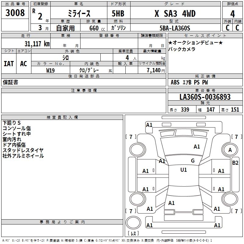 DAIHATSU MIRA E:S X SA3 4WD - лот 3008