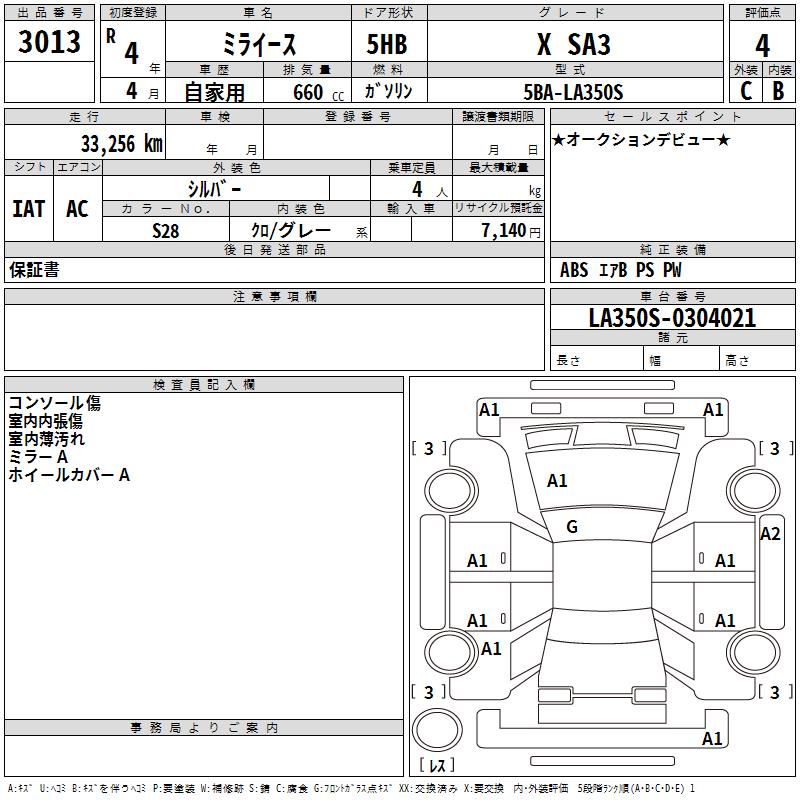 DAIHATSU MIRA E:S X SA3 - лот 3013