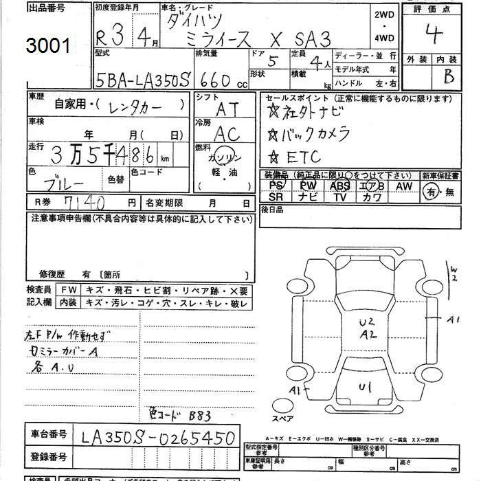 DAIHATSU MIRA E:S X SA III - лот 3001