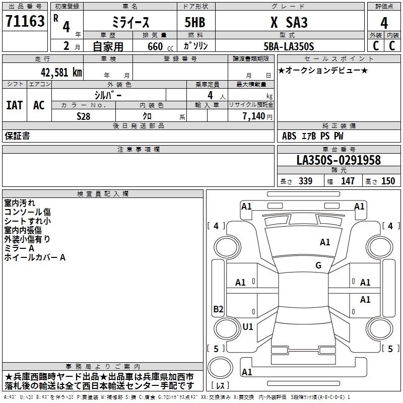 DAIHATSU MIRA E:S X SA3 - лот 71163