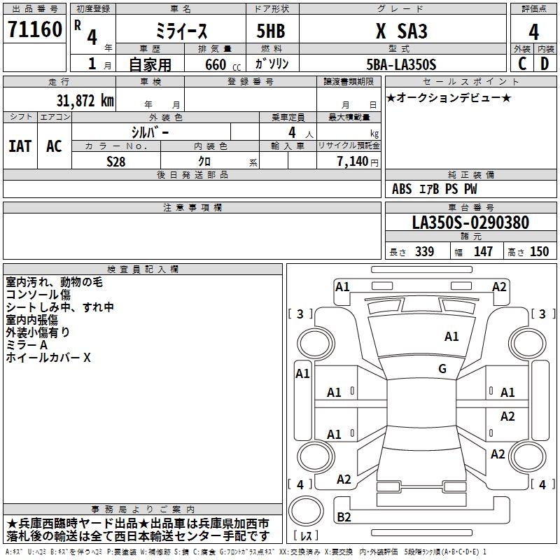 DAIHATSU MIRA E:S X SA3 - лот 71160