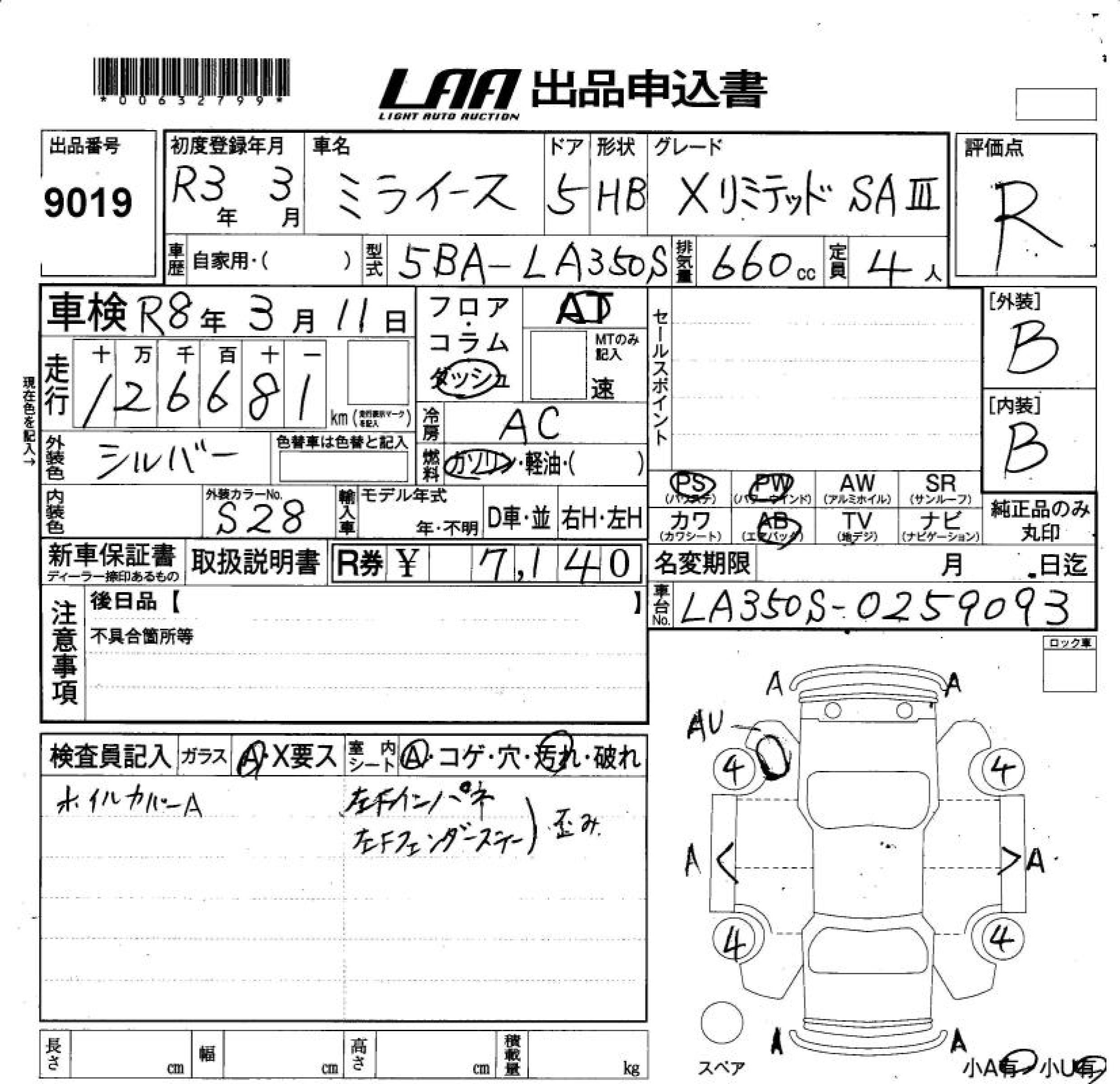 DAIHATSU MIRA E:S X LIMITED SA. - лот 9019