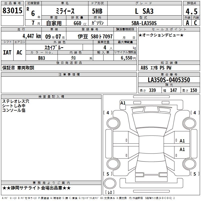 DAIHATSU MIRA E:S L SA3 - лот 83015