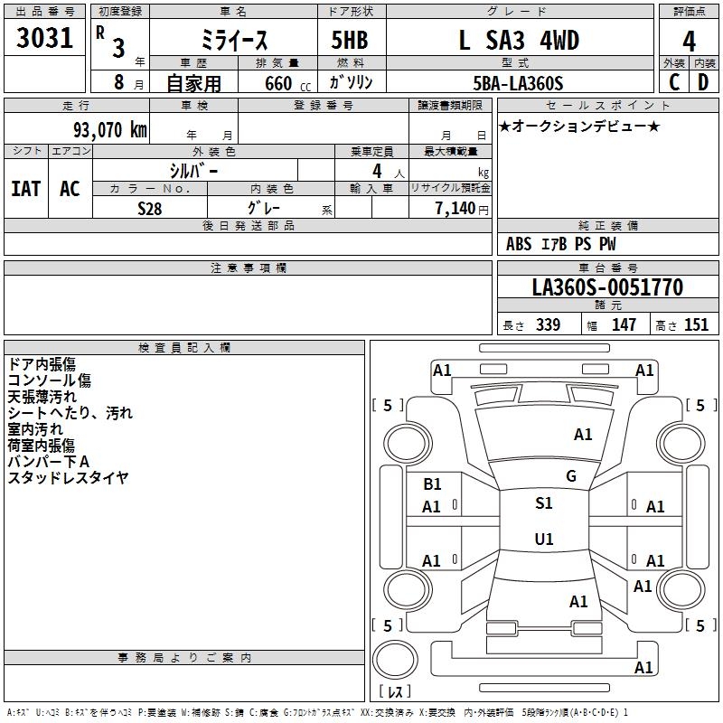 DAIHATSU MIRA E:S L SA3 4WD - лот 3031