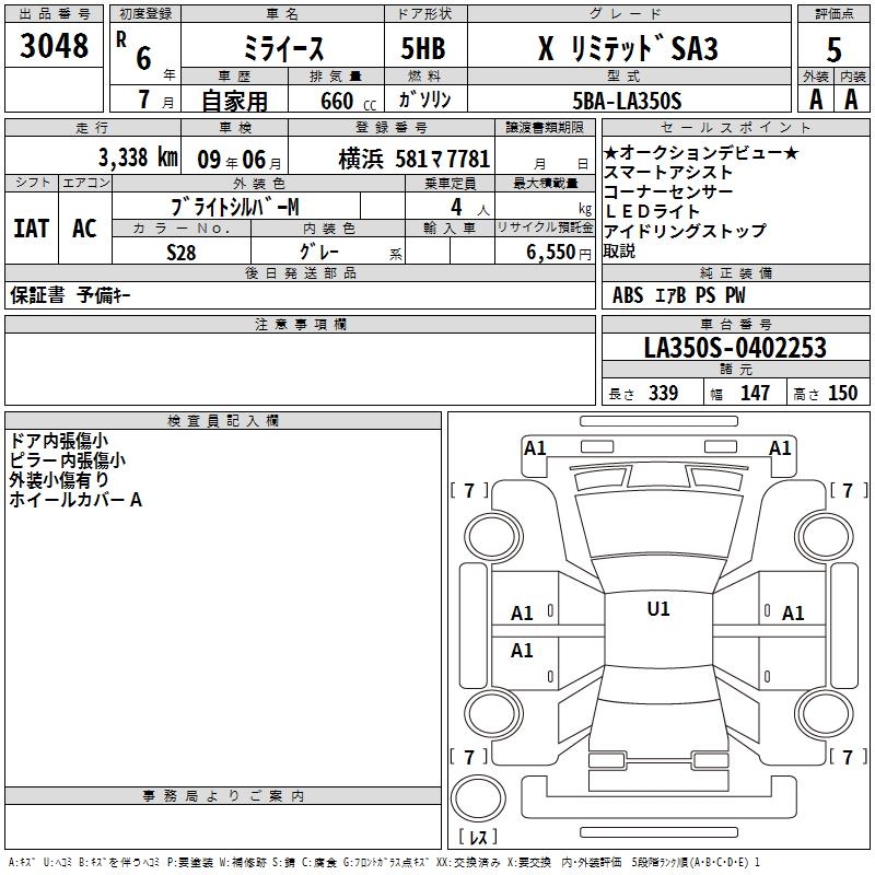 DAIHATSU MIRA E:S X LIMITED SA3 - лот 3048