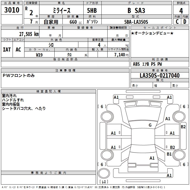 DAIHATSU MIRA E:S B SA3 - лот 3010