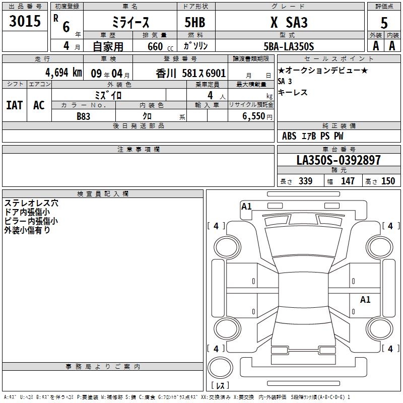 DAIHATSU MIRA E:S X SA3 - лот 3015