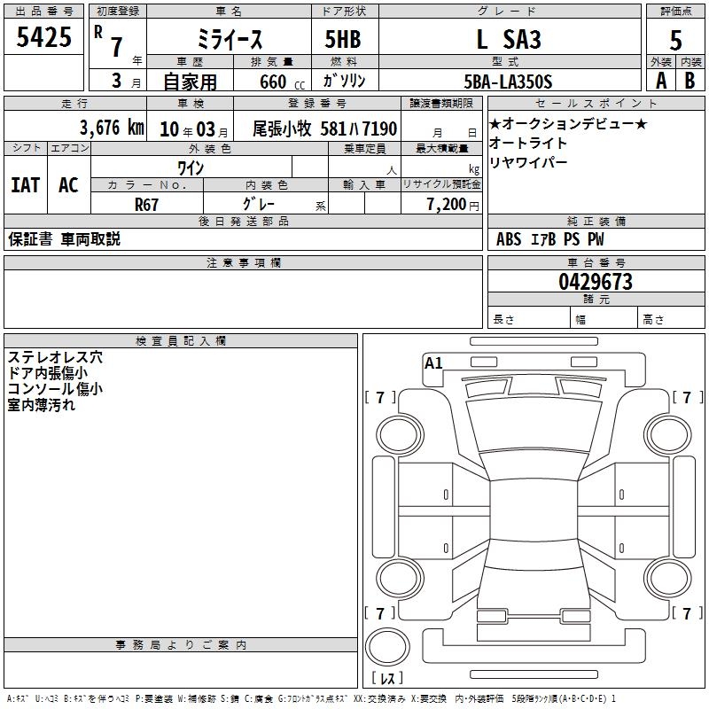 DAIHATSU MIRA E:S L SA3 - лот 5425