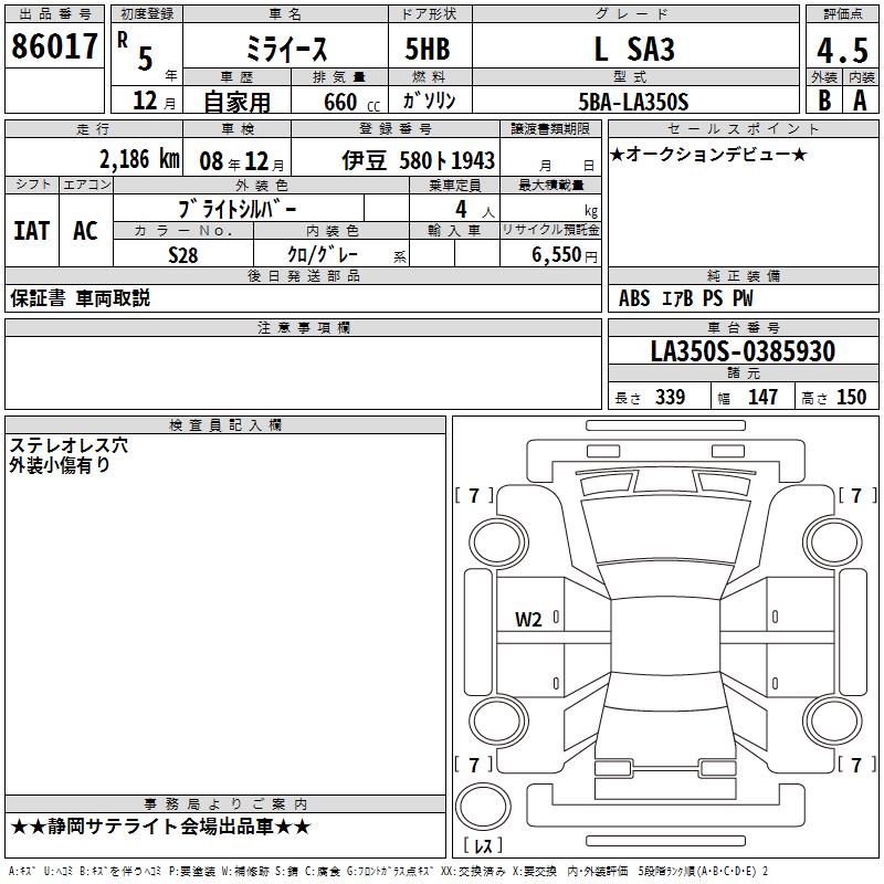 DAIHATSU MIRA E:S L SA3 - лот 86017