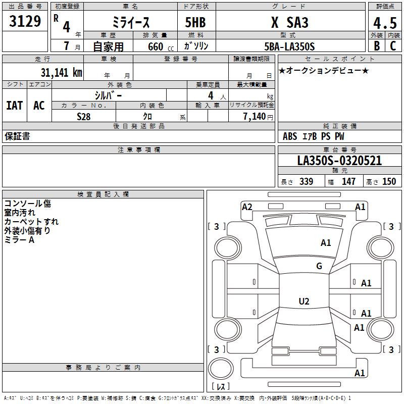DAIHATSU MIRA E:S X SA3 - лот 3129