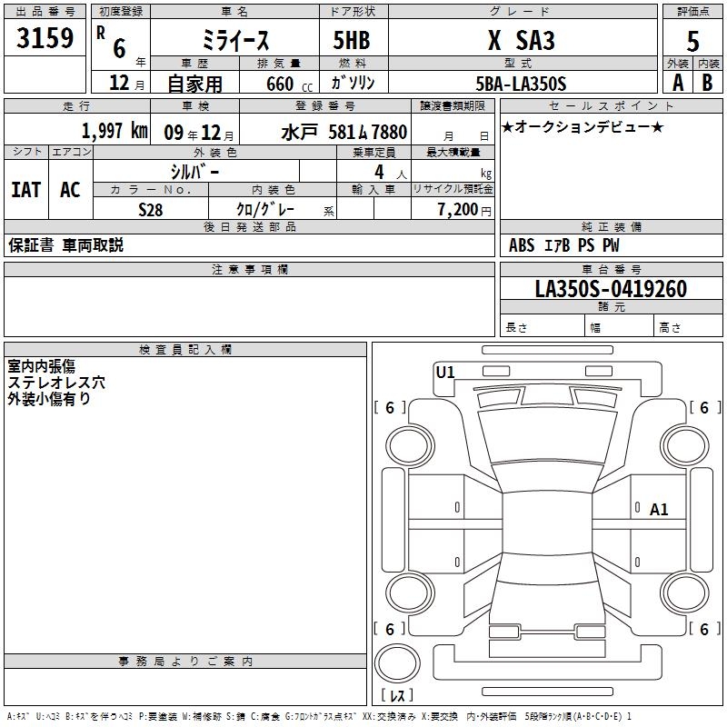 DAIHATSU MIRA E:S X SA3 - лот 3159