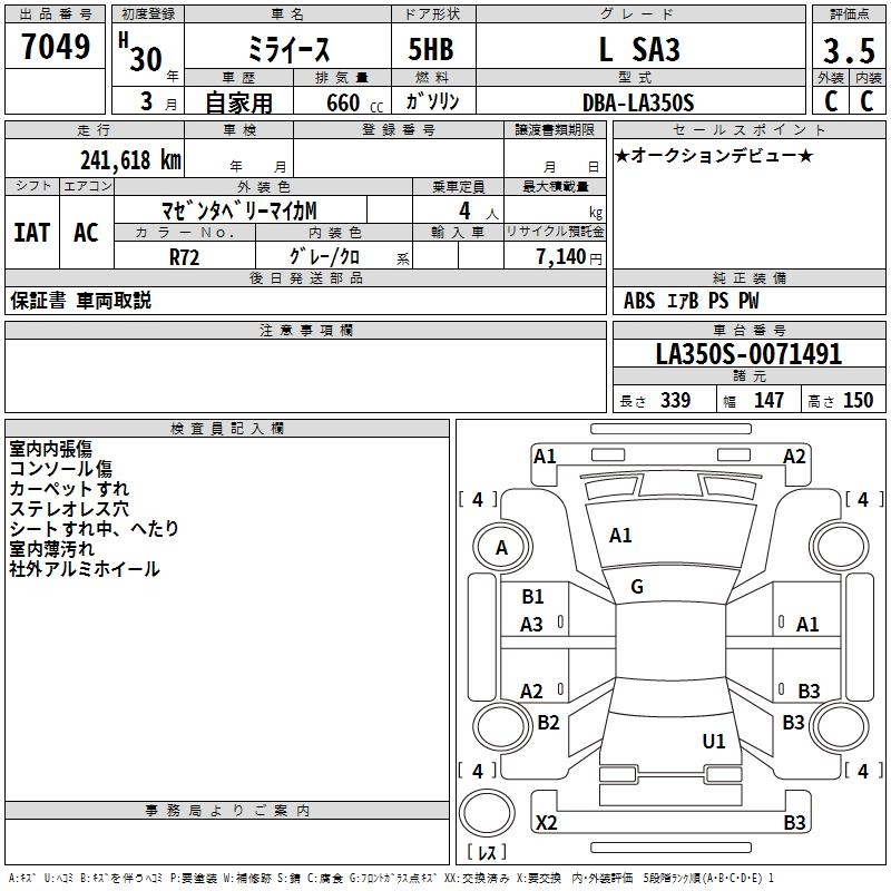 DAIHATSU MIRA E:S L SA3 - лот 7049