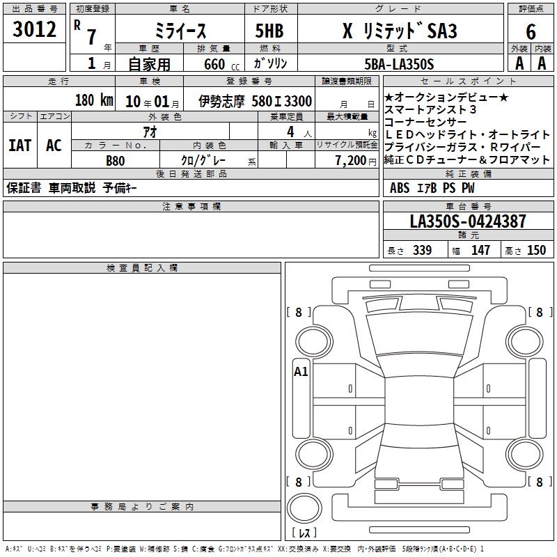 DAIHATSU MIRA E:S X LIMITED SA3 - лот 3012
