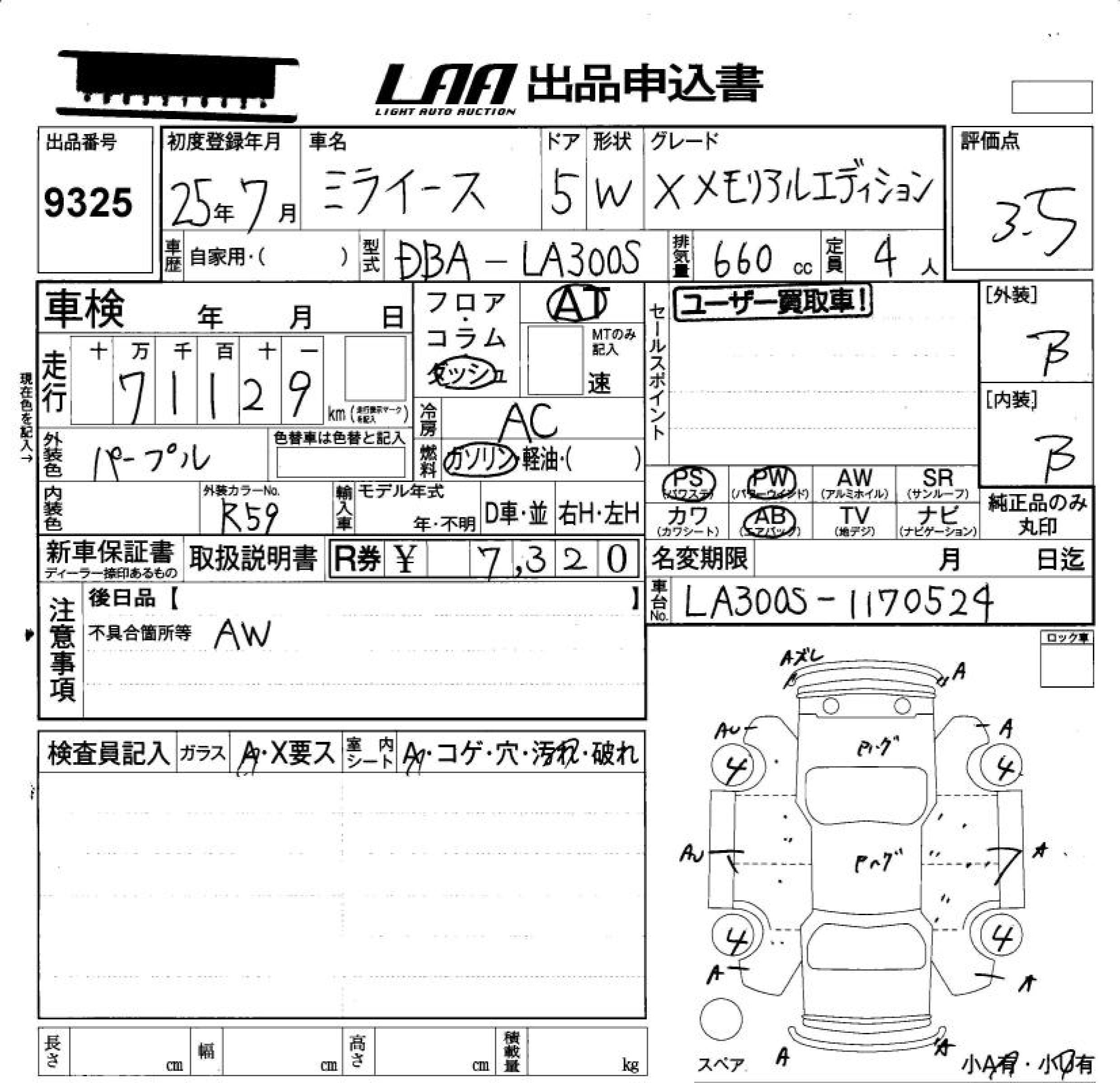DAIHATSU MIRA E:S X MEMORIAL EDITION - лот 9325