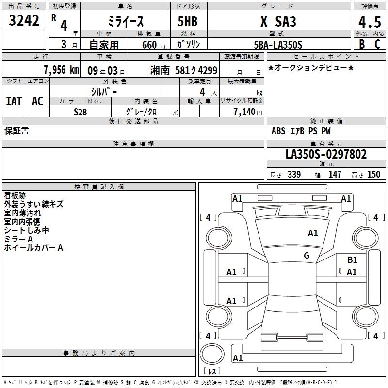 DAIHATSU MIRA E:S X SA3 - лот 3242