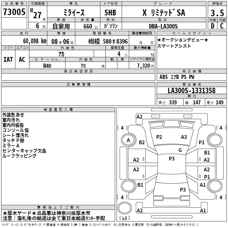 DAIHATSU MIRA E:S X LIMITED SA - лот 73005