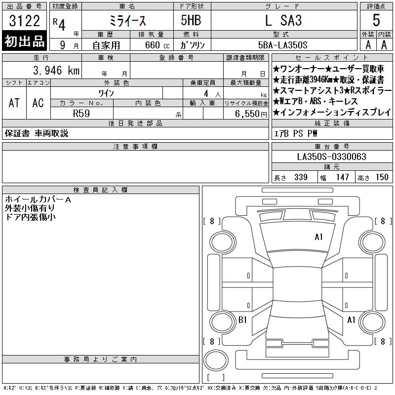 DAIHATSU MIRA E:S L SA3 - лот 3122