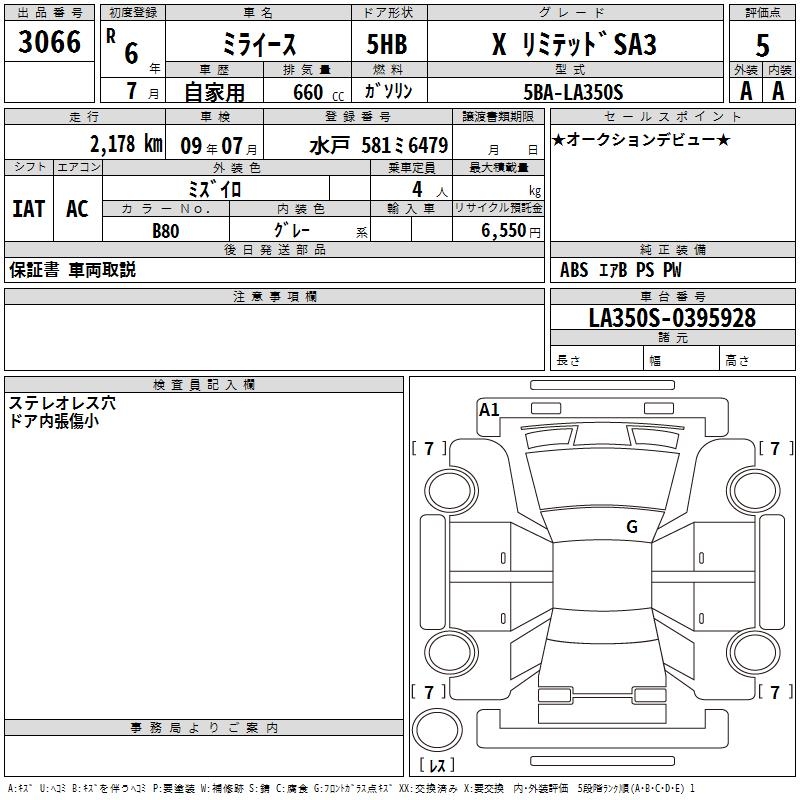 DAIHATSU MIRA E:S X LIMITED SA3 - лот 3066