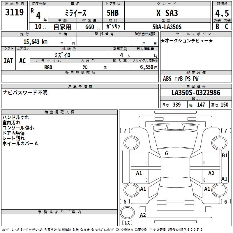 DAIHATSU MIRA E:S X SA3 - лот 3119