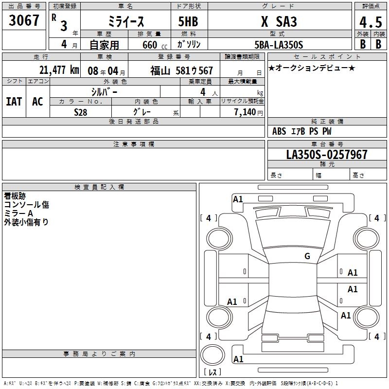 DAIHATSU MIRA E:S X SA3 - лот 3067