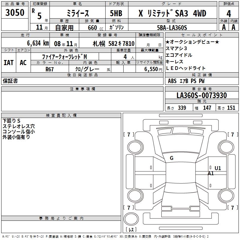 DAIHATSU MIRA E:S X LIMITED SA3 4WD - лот 3050