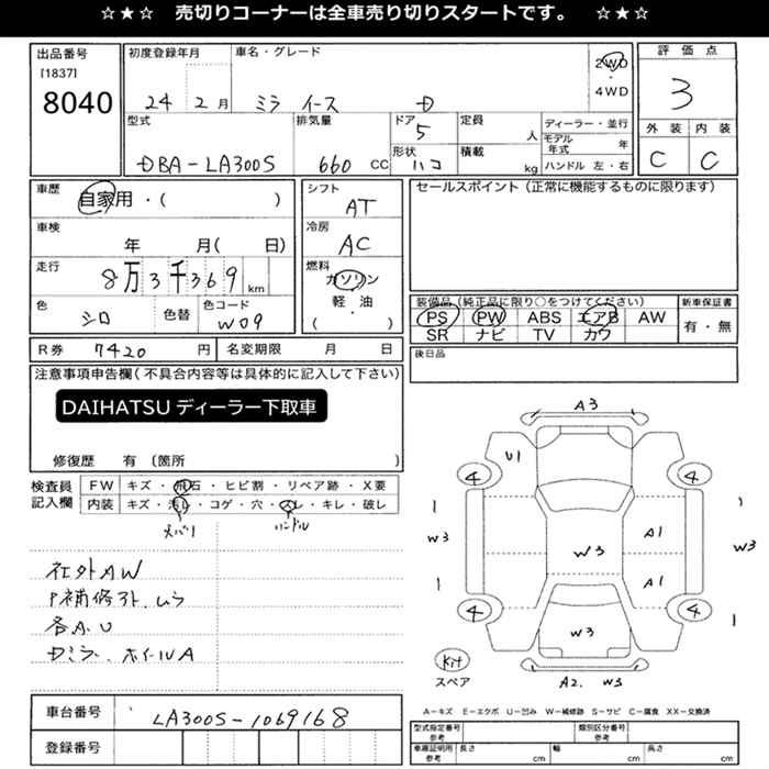 Все аукционы DAIHATSU MIRA E:S
