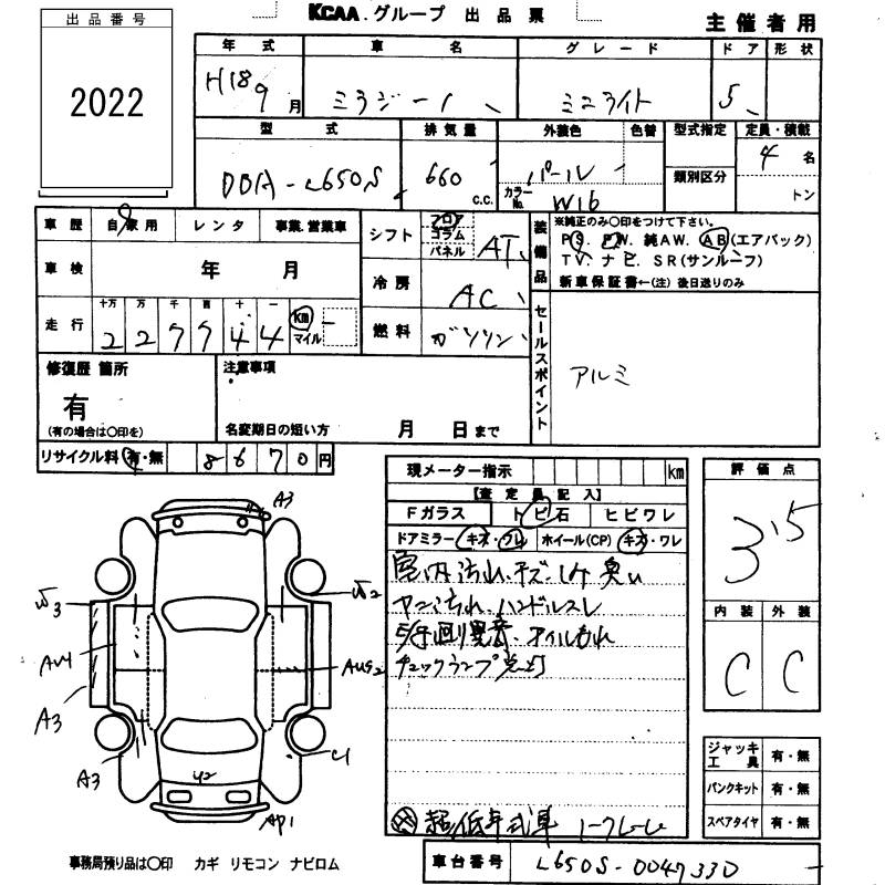 Все аукционы DAIHATSU MIRA GINO