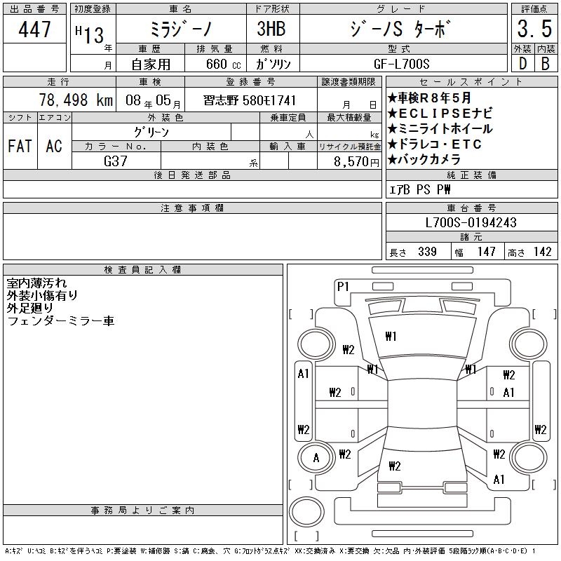 DAIHATSU MIRA GINO GINO S TURBO - лот 447