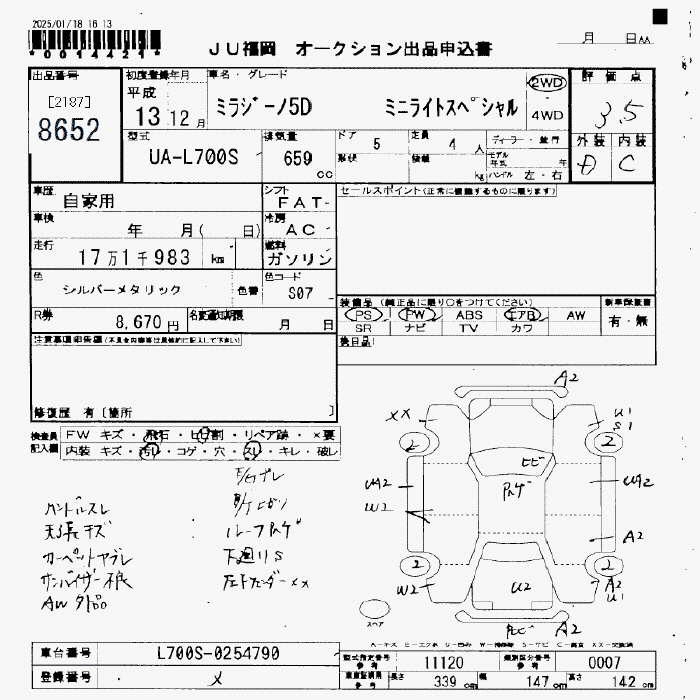 DAIHATSU MIRA GINO MINILITE SPECIAL - лот 8652