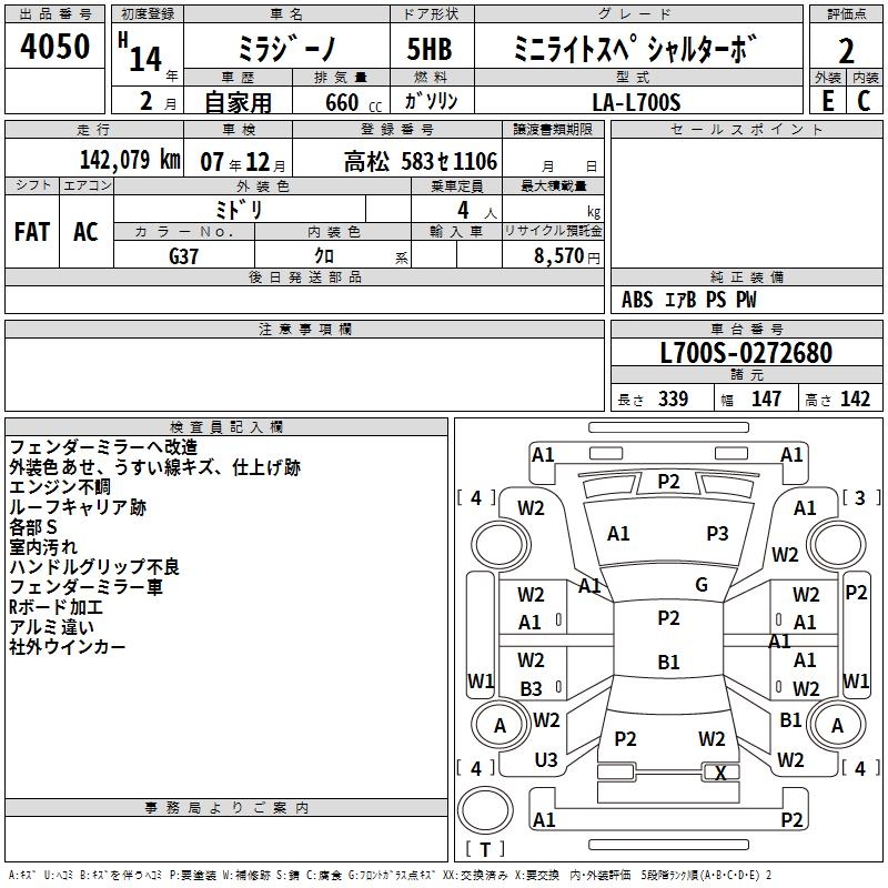 DAIHATSU MIRA GINO MINILITE SPECIAL TURBO - лот 4050