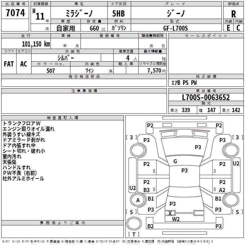 DAIHATSU MIRA GINO GINO - лот 7074