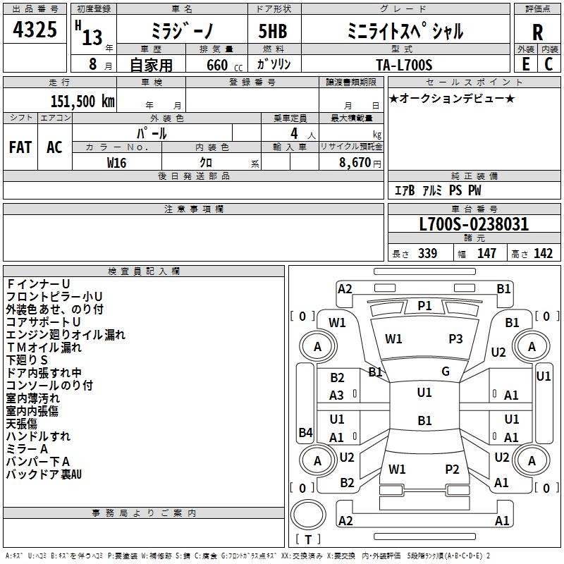 DAIHATSU MIRA GINO MINILITE SPECIAL - лот 4325