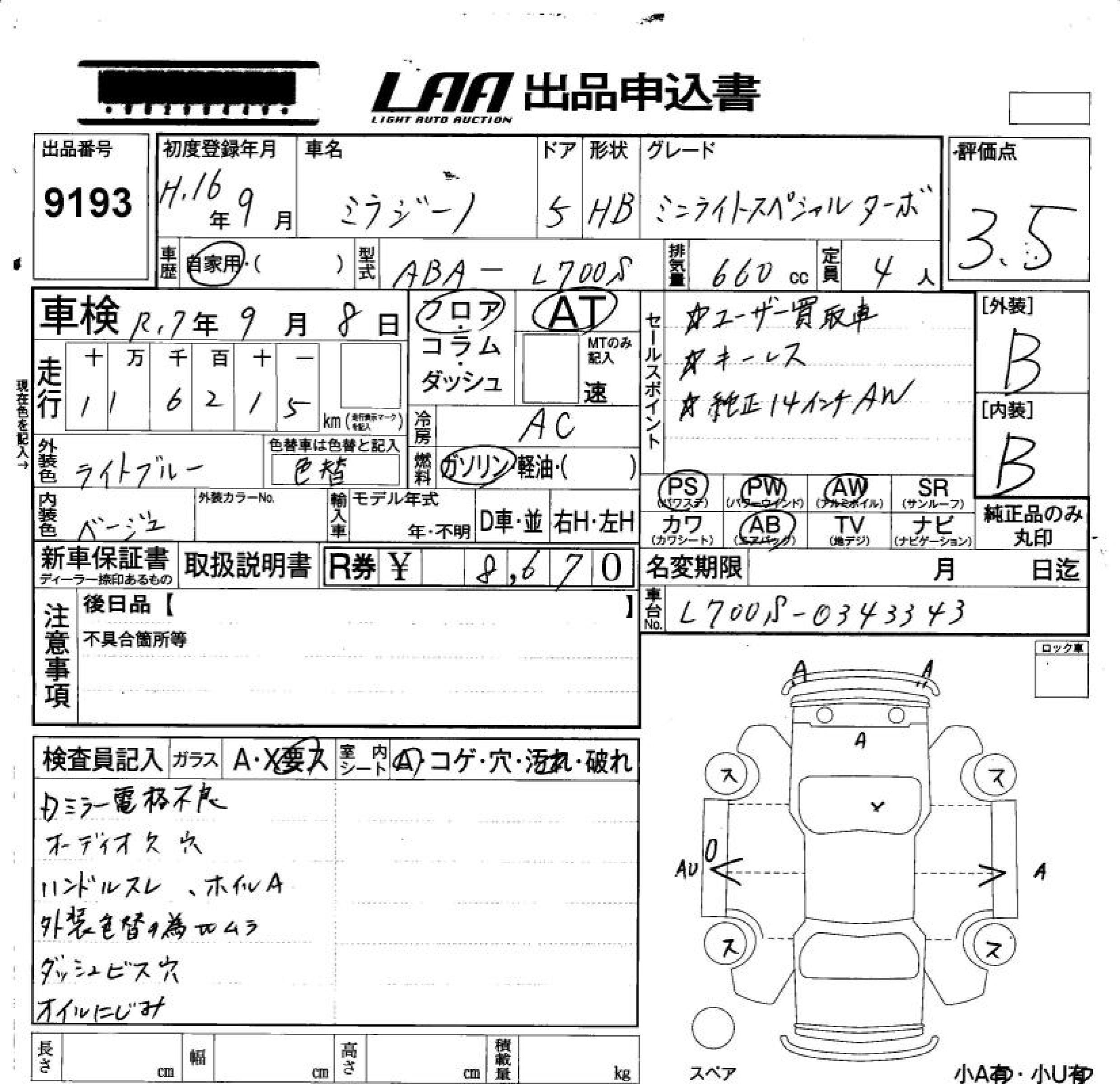 Все аукционы DAIHATSU MIRA GINO