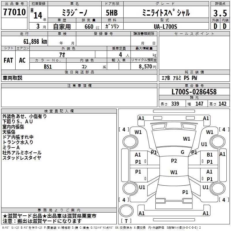 Все аукционы DAIHATSU MIRA GINO
