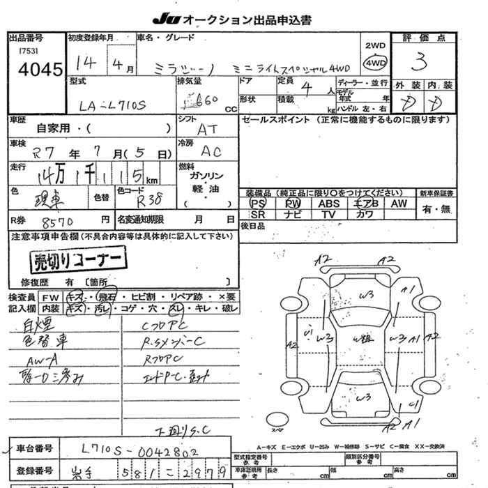 DAIHATSU MIRA GINO 4WD MINILITE SPECIAL - лот 4045