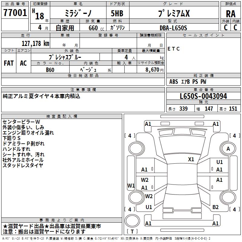 DAIHATSU MIRA GINO PREMIUM X - лот 77001