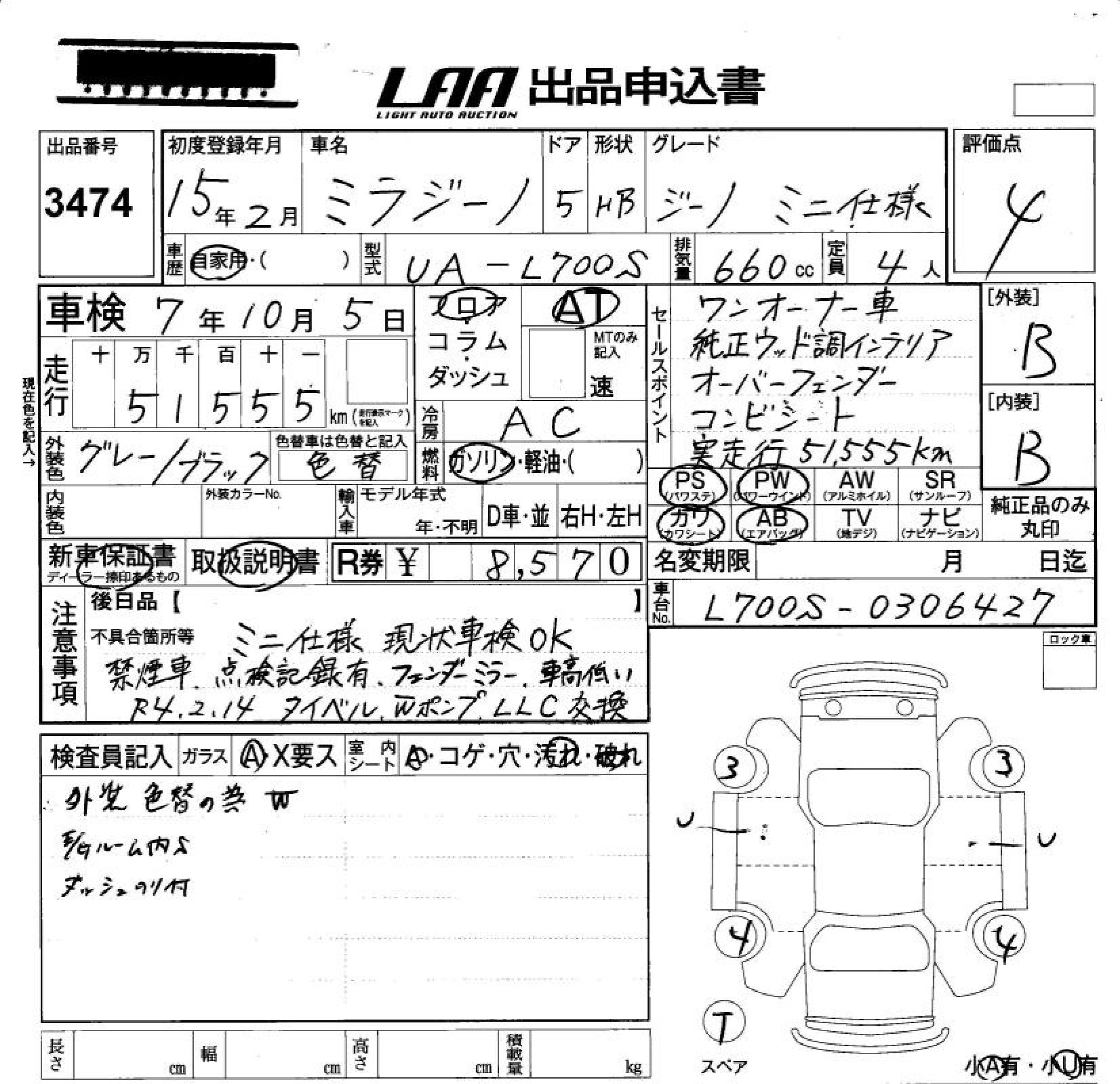 DAIHATSU MIRA GINO GINO MINI SPECIFICATION - лот 3474