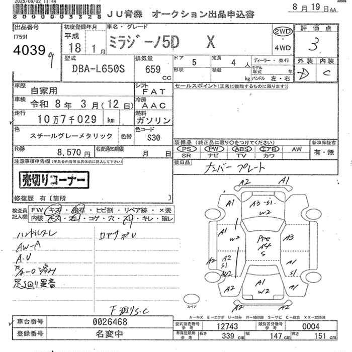 Все аукционы DAIHATSU MIRA GINO